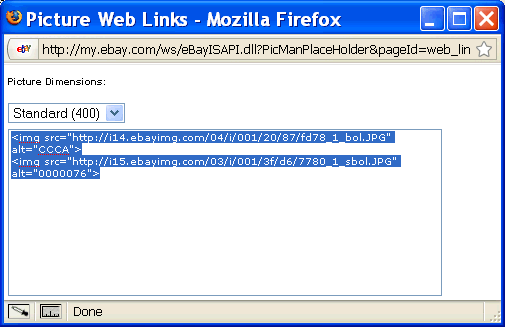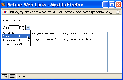 Note: Part of the problem you could have had using eBay's zip files may be a result of their large file size. If so, you may find it necessary to select fewer pictures at a time before using the Copy Web Links button. Be sure to make a note of where you left off in the list of files so you can begin the next group at that point.